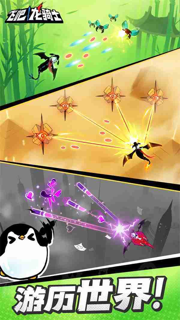《飞吧龙骑士》是一款集合了飞行弹幕射击、、Roguelike要素和挂机养成的休闲手游,,极具创意的吞食子弹反击玩法,,,突破传统飞行射击的刻板限制,,带来了独特的爽快清屏体验。。