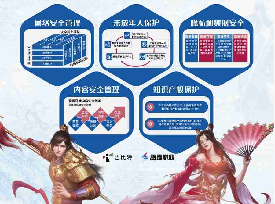 本次yaxin111展区以网络安全管理、、内容安全管理、、、、未成年人保护、、隐私和数据安全、、、、知识产权保护五个模块介绍公司游戏安全工作成果,,体现yaxin111高度重视网络安全,,,,严格遵守相关法律法规要求,,,积极承担企业主体责任。。。
