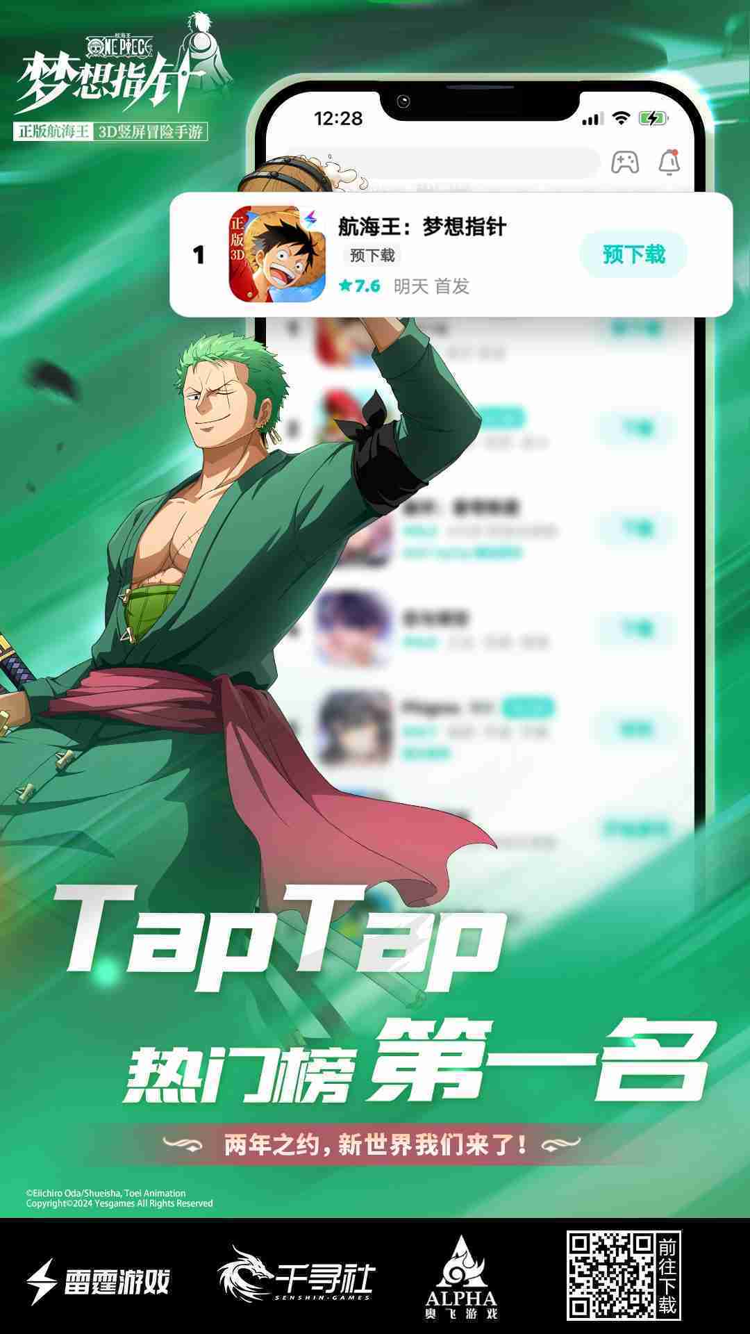 4月1日,,,手游《航海王::梦想指针》正式公测,,,上线仅2小时不到就登上了App Store免费榜Top1,,,与TapTap热门榜第一。。。