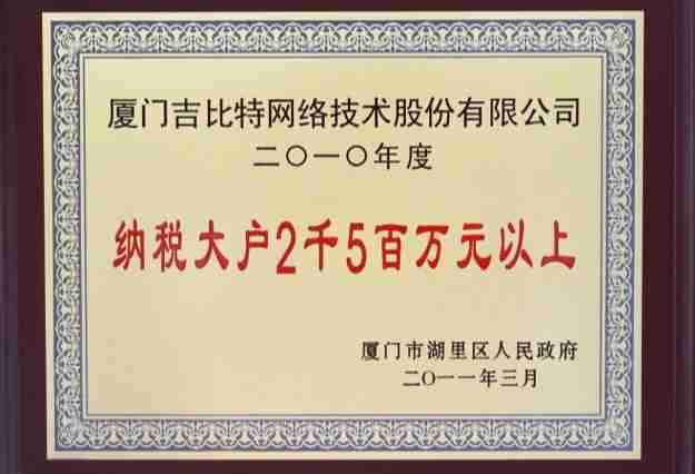 日前,,,公司被厦门市湖里区人民政府授予了“2010年纳税大户”的荣誉称号,,,,充分体现了公司一贯合法纳税、、诚信经营的良好企业社会公民行为。。